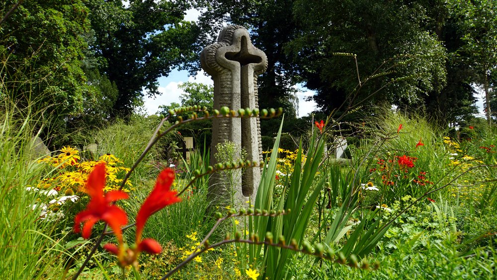 Das neue NaturRuh-Areal auf dem Braunschweiger Hauptfriedhof ist 475 Quadratmeter groß und bietet fünf unterschiedliche Bestattungsmöglichkeiten an. Neben Grabstätten in einem Bienengarten gibt es zusätzlich Urnengräber unter Bäumen und in einer Staudenbepflanzung. Selbstverständlich sind auch Bestattungen im Sarg möglich. Im Jahresverlauf werden die Stauden abwechselnd blühen und auf diese Weise den Insekten stets Nahrung bieten können. entlang des geschwungenen Wegs laden Sitzbänke zum Verweilen ein.