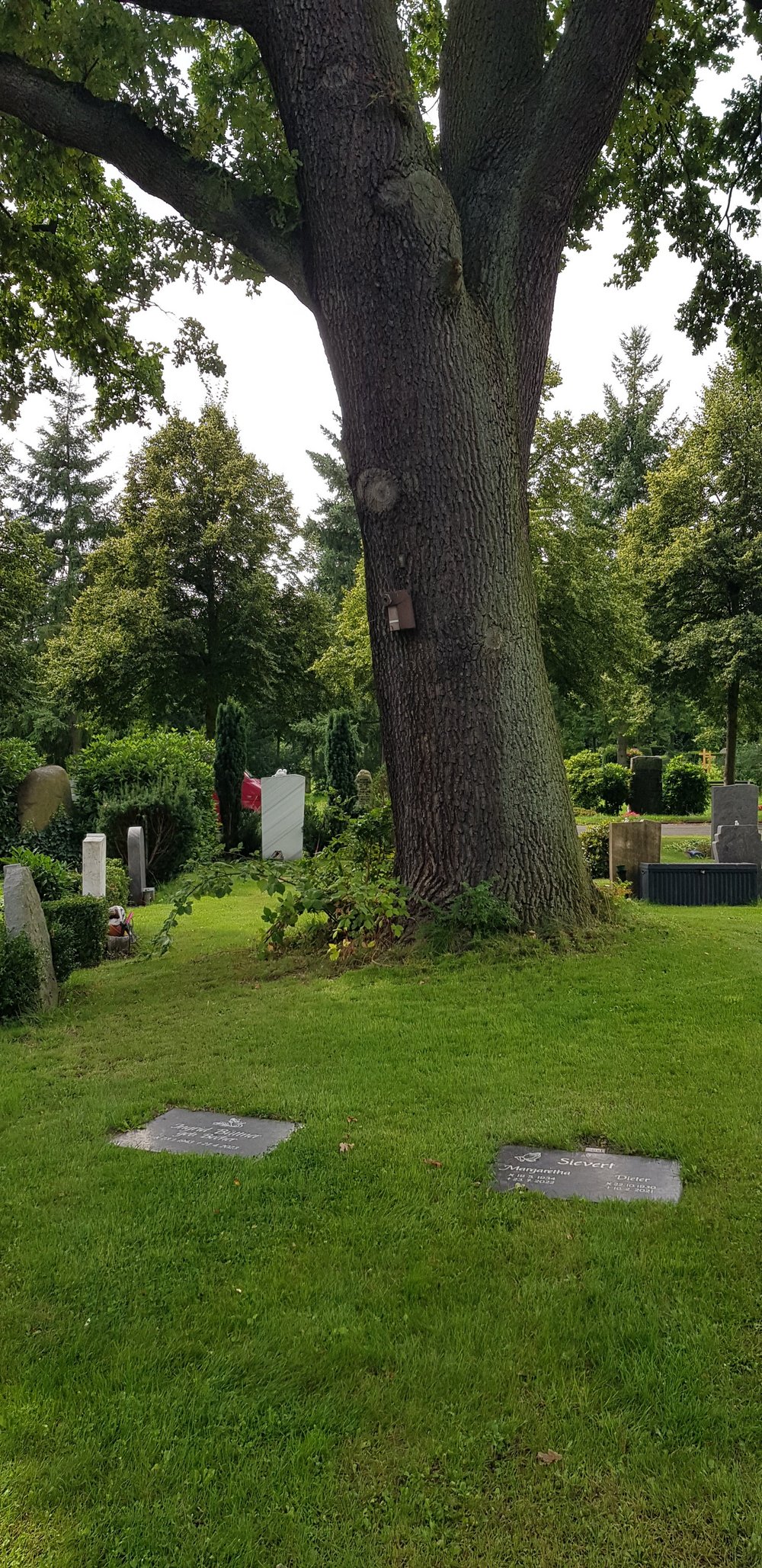 Urnenbaumgräber sind einem bestimmten Baum zugeordnete Urnenwahlgräber, die unter dessen Kronenbereich mit einer Nutzungsdauer von 50 Jahren vergeben werden. Einem Baum ist jeweils ein Urnenbaumgrab zugeordnet.