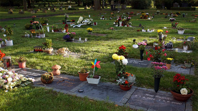 In Urnenrasengräbern mit Namensplatte können bis zu zwei Urnen beigesetzt werden. Die Ruhefrist beträgt einheitlich für jede Urne 20 Jahre.