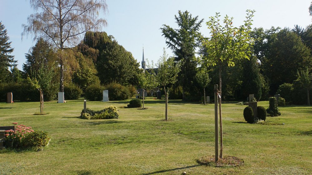 In diesen besonderen Urnenrasengrabstätten kann eine Urne am Fuße eines Obstgehölzes beigesetzt werden. Die Ruhefrist beträgt einheitlich für jede Urne 20 Jahre.